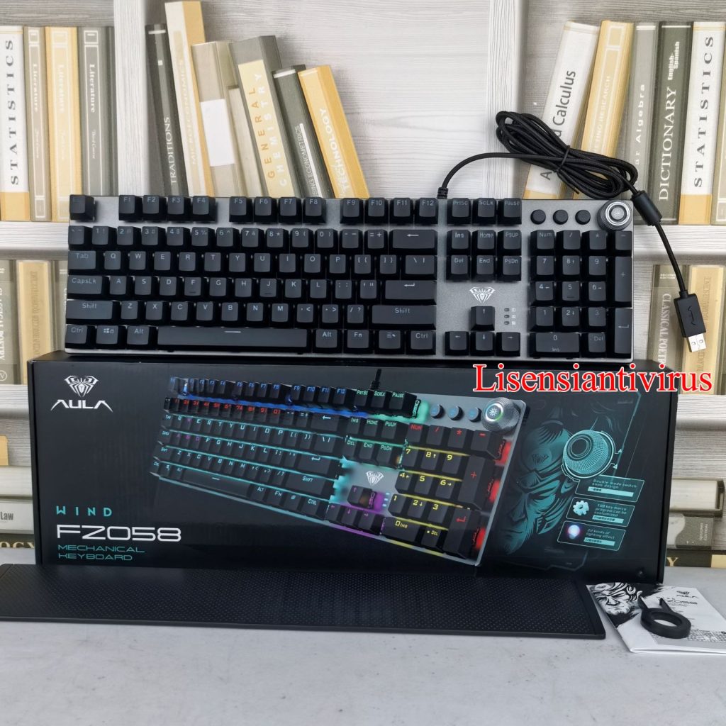 Deskripsi Keyboard Gaming Mechanical AULA F2058 With Knob Button 104 Keys Phantom Backlight Macro Programming Bandar Lampung :