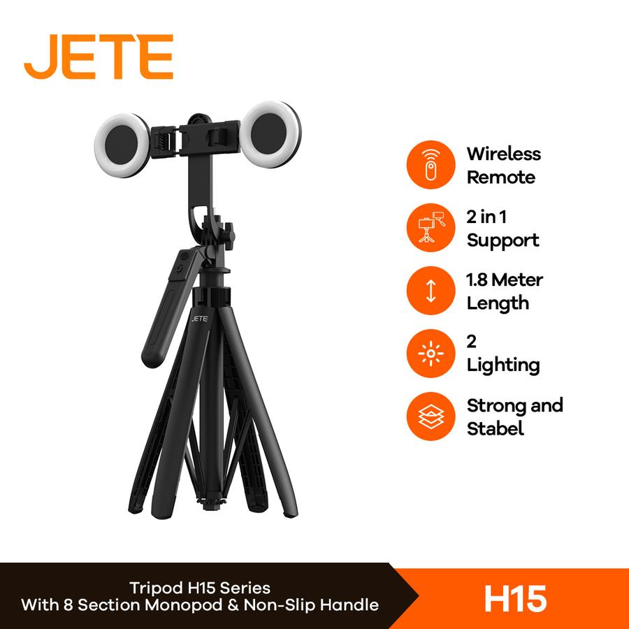 Tripod JETE H15 Series adalah solusi tepat untuk kamu yang ingin membuat konten dengan hasil yang optimal. Terbuat dari bahan berkualitas premium dapat dijadikan dua fungsi. Remote wireless membuat pengoperasian lebih praktis saat mengambil gambar maupun video. - AMBIL GAMBAR SEMAKIN MUDAH DENGAN REMOTE