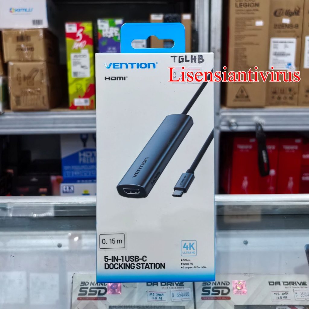 SPECIFICATIONS Brand : Vention Product : 5-in-1 USB-C Docking Station Color : Gray Interface : USB-C/HDMI/USB 3.0/USB 2.0/USB 2.0 Type-C/PD Electroplating Process : Nickel-Plated Conductor : Tinned Copper Shielding : Aluminum Foil + Myra Jacket : PVC Shell : Aluminum Alloy + ABS Power Supply : 100W PD Resolution : 4K@30Hz Data Transfer Rates : 5Gbps (USB 3.0)/480Mbps (USB 2.0/USB 2.0 Type-C) OD : 4.5mm Length : 0.15 m